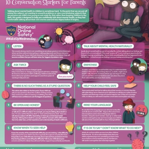 Below are some online safety conversation starters from Childnet. They can be used to help you monitor and support your child’s online activity and safety.