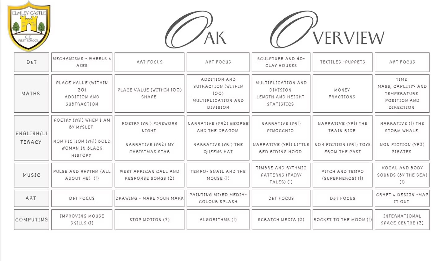 In Oak Class, the teaching team includes Miss Eustace, the teacher, and Mrs. Allen-Jones, the Teaching Partner. Together, they work with our Year 1 and Year 2 pupils to create a magical learning environment.